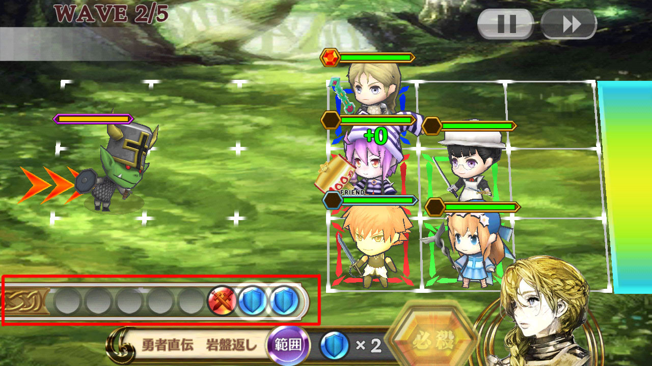 後衛に配置される弓系・魔法系に関しては攻撃が届くので前進させる必要性はありません