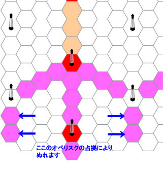 一つの占領したオベリスクの範囲は図の通りです