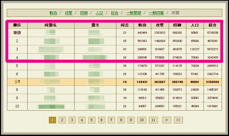 同盟を10位以内にいれるのも厳しい
