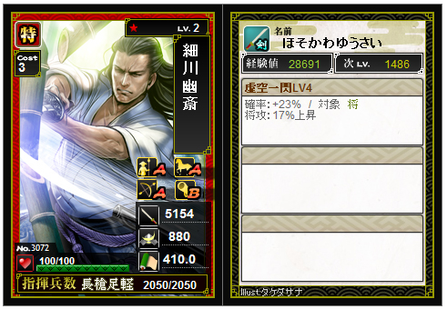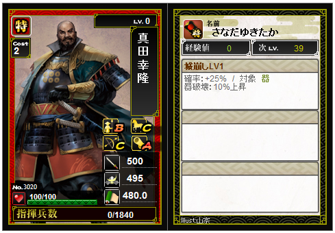 剣豪武将であれば兵1でもかまいません