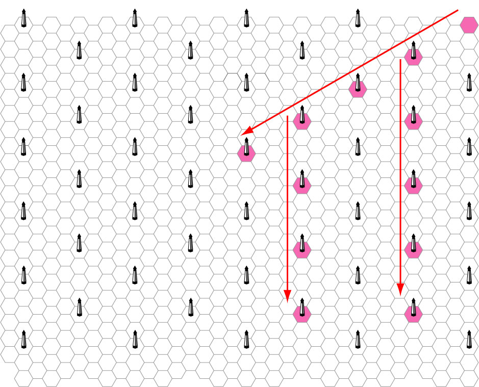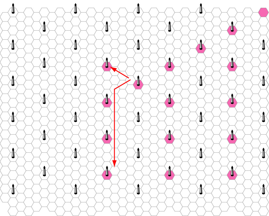 オベリスクとオベリスクののルートはあくまで直線で